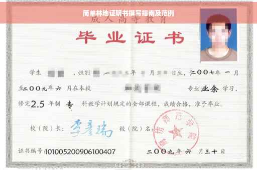 摘要:本篇文章介绍了如何撰写简单的林地证明书。内容包括证书的基本格式、必要信息和填写要点。文章强调证书应包含林地位置、面积、权属、用途等关键信息,并要求填写内容真实、准确、完整。文章旨在帮助需要办理林地证明书的人快速了解如何撰写,以便有效证明林地的相关情况。