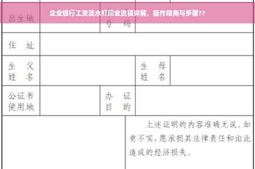 通过本文的介绍,相信您对企业银行工资流水打印有了更全面的了解,在打印过程中,请注意做好准备工作,遵守银行规定,确保打印的流水准确无误,充分了解工资流水的作用,以便在需要时提供有力的证明,希望本文能为您带来帮助,让您更好地了解自己的工资收入情况。