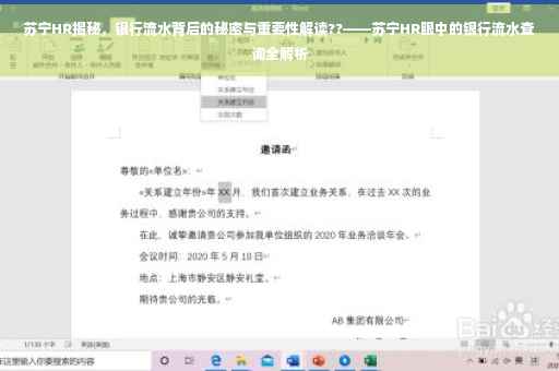 随着互联网的普及和电子商务的飞速发展,银行流水作为个人财务状况的重要体现,其重要性日益凸显,在求职过程中,银行流水不仅反映了求职者的收入水平,还能在一定程度上反映其职业稳定性、消费习惯以及信用状况,本文将从苏宁HR的视角,深入探讨银行流水的重要性及其在招聘过程中的实际应用。