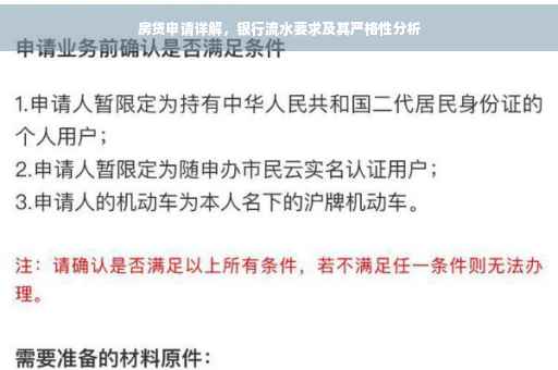 摘要:本文全面解析了房贷申请流程,详细解读了银行对流水的要求。银行在审批房贷时,对银行流水的要求非常严格,以确保申请人的还款能力。本文旨在帮助申请人了解房贷申请过程中银行流水的重要性,并提供相应的指导,以便顺利获得房贷批准。