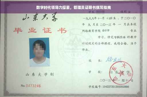 摘要:管理员证明书是展示数字时代领导力的关键文件。撰写时,应着重阐述个人的管理经验、专业技能以及领导团队的能力。内容需简洁明了,突出个人在数字化环境中的领导力表现,如项目管理、团队协作、问题解决及创新能力等方面。通过管理员证明书,展现领导潜力,为数字时代的职业发展铺平道路。