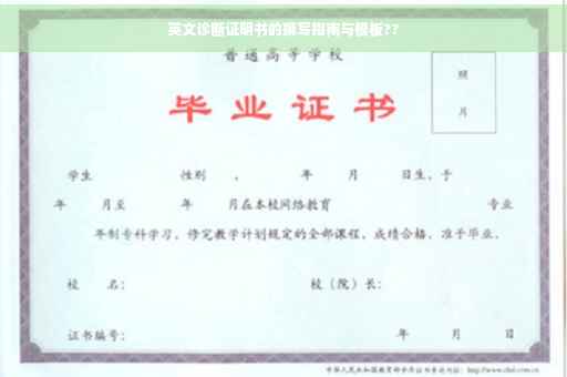 摘要:,,本文介绍了英文诊断证明书的撰写方式。诊断证明书是医生对患者病情评估的重要文件,通常以专业、准确、清晰的格式呈现。内容包括患者基本信息、诊断结果、医生建议等。撰写时需注意使用医学术语,确保信息的准确性和可读性,以便患者及其家属、保险公司等相关方了解病情及治疗方案。