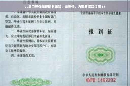 随着人们健康意识的提高,儿童口腔保健越来越受到广泛关注,儿童口腔保健证明书作为评估儿童口腔健康状况、指导家长进行口腔护理的重要依据,其意义日益凸显,本文将详细介绍儿童口腔保健证明书的重要性、内容及其实际应用。