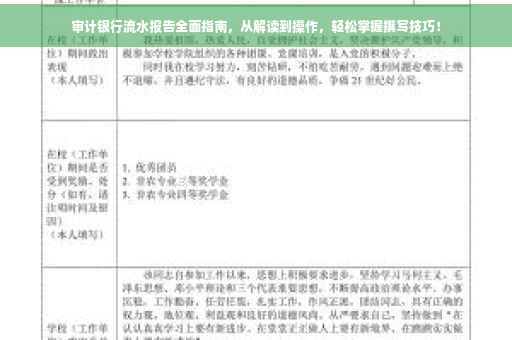 审计整理银行流水报告是金融审计工作的重要环节,对于防范金融风险、提高财务管理效率具有重要意义,希望本文提供的背景、意义、基本步骤、具体操作方法、案例分析及常见问题解决方案等内容,能为读者提供全面的指导,随着技术的不断创新和金融市场的发展,审计整理银行流水报告的方法和技术将不断更新和完善,其在金融领域的作用也将日益凸显。