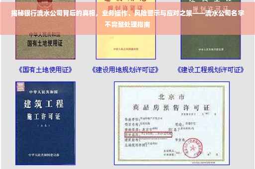 摘要:本文探讨了银行流水单上公司名显示不完整的问题,揭示了背后的真相。文章介绍了业务操作的相关知识,并警示了潜在风险。针对这一问题,提出了应对之策。当遇到银行流水公司名字显示不完整时,建议仔细核对流水单信息,及时联系银行或相关部门核实。提高风险意识,谨慎处理相关业务,确保个人财产安全。