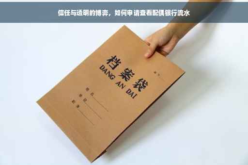 随着社会的进步和人们观念的开放,夫妻间的财产透明逐渐成为热议的话题,当其中一方提出“申请查看配偶银行流水”这一要求时,背后所蕴含的不仅仅是简单的财务透明,更是对双方信任关系的考验,本文将围绕这一主题展开,探讨在婚姻关系中,如何平衡信任与透明,以及在特定情况下如何合理提出和应对查看银行流水的请求。