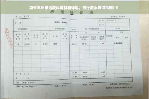 摘要:申请麻省驾照需要准备相关材料并遵循一定流程。所需材料包括个人身份证明、居住证明、年龄证明等。银行流水作为财务证明的一部分,需详细解释。查询银行流水可通过网上银行、手机银行或前往银行柜台进行。了解这些流程与细节,有助于顺利申请麻省驾照。