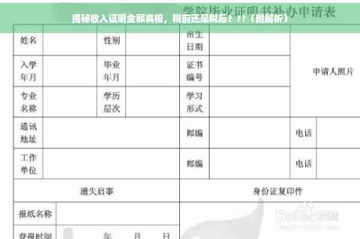 在求职过程中,收入证明是许多公司和企业必不可少的一项要求,而关于收入证明中的金额是税前还是税后的问题,一直困扰着不少求职者,本文将就此问题展开讨论,帮助大家更好地理解收入证明中的金额含义,并探讨相关的注意事项。