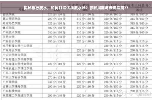 摘要:本文将揭秘银行流水账的秘密,介绍存款需多久才能出现在银行流水中,并指导读者如何打造优质流水账。对于想要了解银行流水账的读者,本文提供了重要的信息和建议,帮助他们在银行业务中更加得心应手。关键词:银行流水、存款时间、优质流水账。