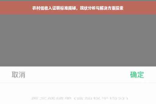 农村低收入证明标准的制定与调整是一项重要而复杂的任务,通过加强调研、科学制定标准、简化流程、加大扶贫力度等方式,我们可以有效保障农村低收入群体的基本生活,促进农村社会的和谐稳定。