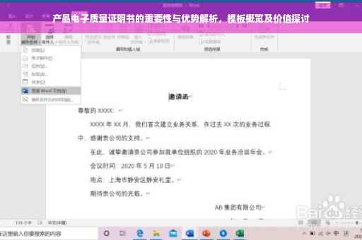 摘要:产品电子质量证明书在现代商业中扮演着至关重要的角色。其重要性体现在确保产品质量、提高透明度以及便于信息共享等方面。相比传统纸质证明,电子质量证明书具有显著优势,如降低成本、提高效率、防止篡改等。电子质量证明书模板的推广使用,进一步简化了操作流程,加强了质量管理。