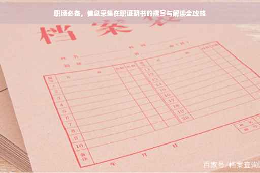 摘要:,,本文将介绍信息采集在职证明书的撰写与解读方法。在职证明书是职场必备文件,能够证明个人在职状态及职务职责。本文将指导读者如何正确撰写在职证明书,包括必要的信息要素和格式要求,同时解读证明书的内容,帮助职场人士更好地利用在职证明书展现自身能力与价值。