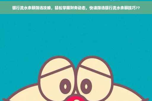 掌握银行流水余额筛选的方法和技巧,有助于您更好地了解自身财务状况,为理财规划、贷款申请等提供有力支持,在实际操作中,请务必遵守相关法律法规,保护个人信息,希望本文能为您的财务管理带来帮助,让您轻松掌握财务动态,为未来的财务规划打下坚实的基础。