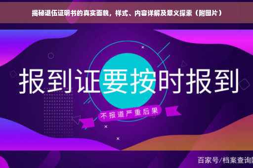随着国家的繁荣和发展,军队作为国家的坚强后盾,一直在默默地守护着我们的家园,而在这个过程中,许多英勇的战士们在完成他们的服役期限后,会离开军营,回到普通生活中去,而他们的服役证明,即退伍证明书,是他们曾经为国家付出的最好见证,退伍证明书究竟是怎样的呢?本文将为您揭示退伍证明书的真实面貌,带您了解它的样式、内容与意义。