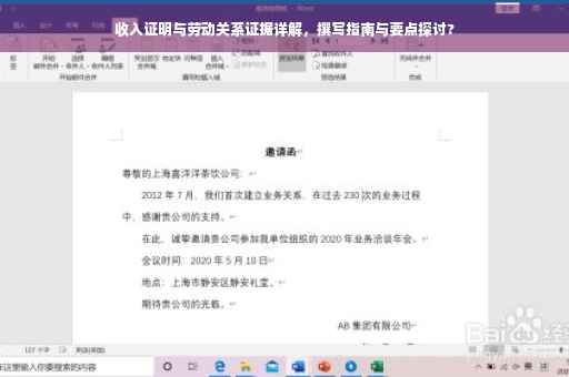 摘要:本文将详细解析收入证明与劳动关系证据的关系,介绍如何撰写收入证明以作为劳动关系证据。文章将涵盖收入证明的基本要素,包括证明的目的、收入人的基本信息、收入详情以及证明出具方的信息。本文将强调在撰写收入证明时需要注意的要点,如确保信息的真实性和完整性,以便有效地作为劳动关系证据使用。