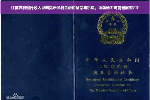 江南农村银行的收入证明不仅展示了乡村金融的蓬勃活力与机遇,更体现了其在促进农村经济增长、改善民生方面的积极作用,江南农村银行将继续发挥地方金融机构的优势,加大支持力度,服务乡村振兴,助力地方经济发展。