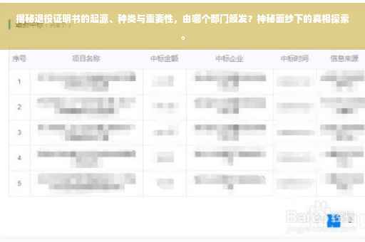 摘要:本文将为您揭开退役证明书的神秘面纱,带您了解它的起源、种类和重要性。我们将详细介绍退役证明书是由哪个部门发放,以及它在各个领域的应用价值。通过阅读本文,您将全面认识退役证明书的重要性,为您的生活和工作提供有力支持。