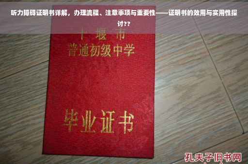 在现代社会,听力障碍证明书对于个人和社会都具有重要的意义,对个人而言,它是申请相关福利政策、就业、教育等方面的有效凭证;对社会而言,它有助于保障听力障碍者的合法权益,促进社会的公平与和谐,本文将详细介绍听力障碍证明书的办理流程、作用及注意事项,帮助读者更好地了解和利用这一重要文件。