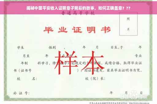 摘要:本文探讨了中国平安收入证明章子背后的故事,介绍了如何正确盖章。文章指出,盖章是中国平安公司确认员工收入的一种重要方式,涉及严格的内部流程和规定。读者将了解到如何按照规定流程正确盖章,以及背后相关的注意事项和常见问题解答。通过本文,读者可以更好地理解中国平安收入证明章子的作用和意义。