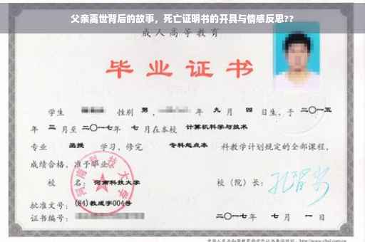 摘要:,,本文讲述了一位父亲离世后,涉及到一份特殊的证明书背后的故事。文章探讨了父亲死亡证明的开具地点和流程,以及这一过程所蕴含的情感和意义。通过讲述这一过程,文章让读者感受到家庭、亲情和生命的脆弱,引发读者对生命和珍惜当下的思考。??