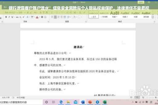 1、个人隐私泄露:银行账户流水属于个人隐私信息,一旦泄露,可能导致客户的隐私被侵犯,甚至遭受诈骗等风险,这不仅给客户带来财产损失,还可能对其心理造成严重影响。