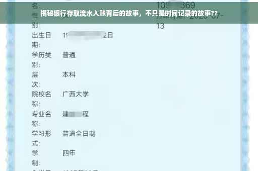 银行存取流水并非只有入账而已,背后隐藏着许多与我们息息相关的故事,通过深入了解银行流水,我们可以更好地管理个人财务,顺利办理银行业务,观察自己生活变化的一面镜子,希望本文能为您揭示银行存取款流水的更多奥秘,助您更好地掌握个人财务管理之道。
