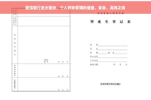 随着互联网技术的不断发展,越来越多的人开始选择使用微信银行流水模块来管理自己的财务,微信银行流水模块作为一种新型的金融工具,以其便捷、安全、高效的特点,受到了广大用户的青睐,本文将详细介绍微信银行流水模块的功能特点,帮助大家更好地了解和使用这一工具。