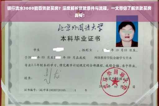 摘要:银行流水3000是否能贷款买房取决于多种因素。本文将深度解析贷款条件与流程,探讨银行流水在贷款买房中的重要作用,同时分析其他影响贷款的因素如收入稳定性、信用记录等。本文旨在为读者提供全面的信息,帮助了解是否可以通过银行流水3000贷款买房,并顺利办理相关手续。