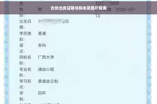 摘要:本文提供了关于合伙出资证明书的样本内容,包括证明书的格式和图片参考。该证明书是合伙人之间出资情况的证明文件,用于确认各合伙人的出资额度和比例,保障各方权益。样本内容包括证明书的基本信息、合伙人信息、出资情况和签字盖章等部分。参考图片可帮助用户更直观地了解证明书的样式和排版。