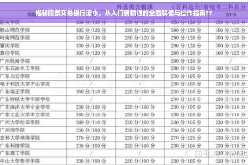 在股票市场中,交易股票早已成为许多投资者追求财富增值的重要途径,对于初次涉足股市的投资者来说,如何顺利地进行股票交易仍然是一个充满疑问和挑战的问题,关于股票交易是否需要银行流水这一问题,不少投资者可能感到困惑,本文将为您详细解读股票交易中银行流水的相关知识,助您更好地理解和掌握股市交易技巧。