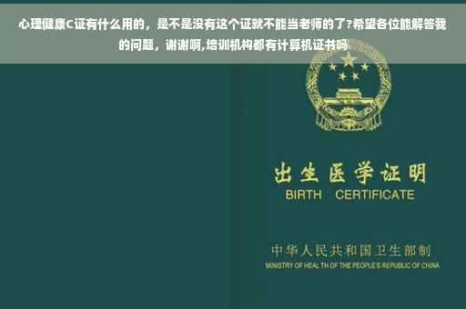 这个是作为教师或教育工作者成为心理健康教师的第一关,有了C证就可以对自己班级或所在学校的学生做心理辅导,这个证要经过培训学习,考试,面试.才能通过的.想成为老师要看个县市的招考标准的,学历证书,教师资格证,普通话等级证书,计算机证书,英语等级证书等好像是要有的,也要看情况的.如果要有心理健康C证的话,只能说你们那的招考要求高了点.