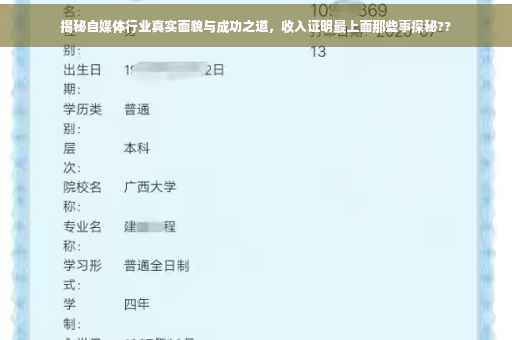 摘要:本文探讨了自媒体行业的真实面貌与成功之道,揭秘收入证明最上面应填写的内容。文章指出自媒体行业的竞争与挑战,并强调成功的关键在于优质内容和营销策略。通过深入了解行业趋势和读者需求,自媒体人可以不断提升自身实力,实现高收入。文章旨在为自媒体从业者提供有价值的参考和建议。