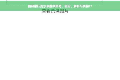 银行流水单虚拟账号是金融科技发展的产物,为个人和企业带来了便利,在使用虚拟账号时,要注意保护个人信息和交易安全,定期查询和保存流水单,本文希望读者能更好地了解和使用银行流水单虚拟账号这一金融工具。