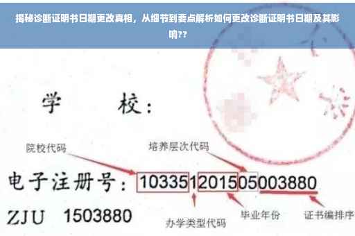 摘要:本文将揭示诊断证明书日期更改的真相,介绍如何正确更改诊断证明书日期。内容涵盖诊断证明书的重要性、为何需要更改日期、如何合法合规地进行更改,以及注意事项和可能面临的后果。阅读本文,您将了解诊断证明书日期更改的真相,以及如何安全有效地完成这一过程。