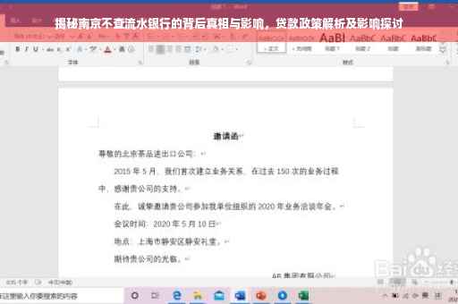 关于南京地区不查流水银行的传闻不断发酵,人们开始关注这一政策调整的背后原因及其可能带来的影响,为了还原事件真相,我们进行了全面的调查。