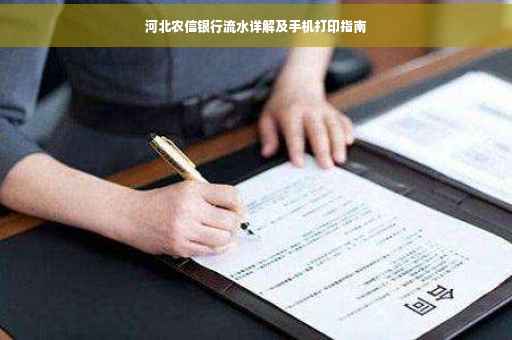 摘要:本文将详细介绍河北农信银行的流水内容,包括其各项交易明细。还将指导用户如何在手机上打印河北农信银行的流水,便捷地获取个人银行账户交易记录。通过本文,读者可以了解河北农信银行流水的查询和打印方法,以便更好地管理个人财务。