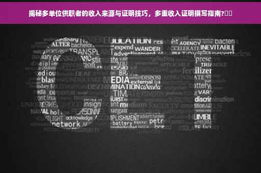 在当今社会,随着就业形式的多样化,越来越多的职场人士选择多单位供职以追求更高的收入或拓展职业发展机会,面对多单位工作的复杂性和多样性,如何有效地证明自己的收入成为一个关键问题,本文将深入探讨这一话题,帮助多单位供职者从容应对各种收入证明需求。