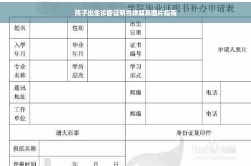 摘要:本文将详细介绍孩子出生诊断证明书的重要性及其内容,包括孩子的健康状况、出生时间等关键信息。本文还将提供孩子出生诊断证明书的图片,以帮助读者更好地了解该证明书的外观和格式。通过本文,读者可以更好地了解如何获取和使用孩子出生诊断证明书,以确保孩子的健康得到妥善保障。
