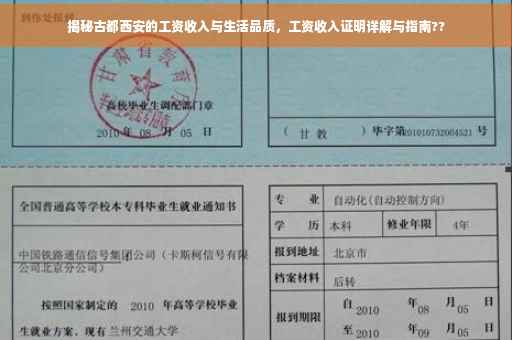 西安,作为中国的古都,近年来经济发展迅速,吸引了大量人才涌入,越来越多的人关心在西安的工资收入情况,希望了解这座城市的薪资水平以及生活品质,本文将为您揭示西安的工资收入证明,带您了解这座城市的薪资状况。