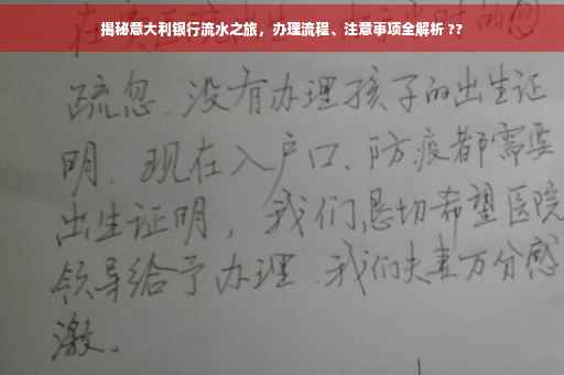赴意大利办理银行流水是适应意大利金融环境的重要步骤,本文为您详细阐述了办理流程、所需材料及注意事项,帮助您顺利办理银行流水,保持良好的银行流水对于展示个人经济状况具有重要意义,希望本文能为您的意大利之旅提供有益的参考,祝您在意大利的生活顺利、愉快!