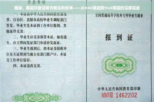 摘要:本文将揭示关于940医院诊断证明书背后的故事,同时提及960医院诊断证明的相关情况。通过深入了解,我们将探索这些诊断证明的制作、使用及其背后的真实性,帮助公众更加明智地看待医疗证明的重要性及其背后的细节。