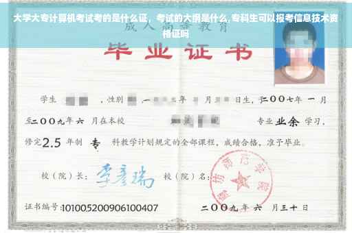 考试分为四个等级,不同等级的内容不同,一级主要考核微型计算机基础知识和使用办公软件及因特网(Internet)的基本技能。一级分为DOS版和Windows版,考核应试者计算机基本知识和使用微机系统的初步能力。考试科目有一级MS Office、一级WPS Office、一级Photoshop,一级共三个科目。一级WPS Office考试内容: (1) 选择题(计算机基础知识和网络的基本知识)。(2) Windows 操作系统的使用。(3) WPS 文字的操作。(4) WPS 表格的操作。(5) WPS 演示软件的操作。(6) 浏览器(IE)的简单使用和电子邮件收发。一级MS Office考试内容: (1) 选择题(计算机基础知识和网络的基本知识)。(2) Windows 操作系统的使用。(3) Word 操作。(4) Excel 操作。(5) PowerPoint 操作。(6) 浏览器(IE)的简单使用和电子邮件收发。一级Photoshop考试内容: (1)单项选择题 (含计算机基础知识部分,Photoshop 知识与操作部分)。(2)Photoshop 操作题(含3 道题目)。专科生可以报考信息技术资格证,但是有限制 。申请参加幼儿园教师资格考试,师范类毕业生应具备中等学历层次幼儿教育类专业毕业及其以上学历,非师范类毕业生应具备大学专科毕业及其以上学历。