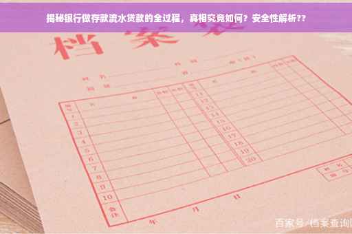 随着金融市场的发展和人们生活水平的提高,越来越多的人开始关注银行提供的存款流水贷款,本文将详细介绍这一金融服务的具体流程、注意事项以及一个实际案例,帮助读者更好地了解银行做存款流水贷款的全过程。