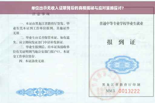 面对单位出示无收入证明存在的真相与挑战,我们需要政府、单位和个人共同努力,寻求有效的应对之策。