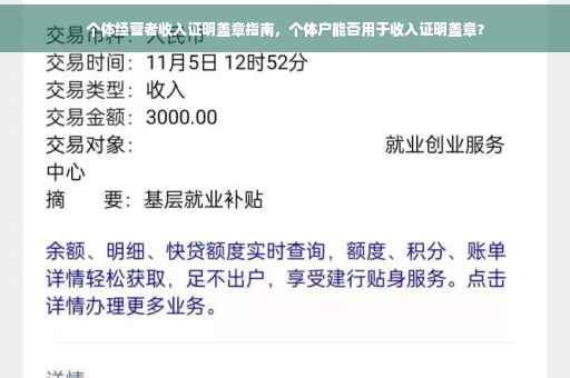 摘要:关于个体经营者收入证明盖章的问题,指南指出收入证明盖章可用于个体户。个体经营者需提供相关证明材料,如营业执照、税务登记证等,并加盖个体户公章,以证明其经营收入情况。此指南为个体经营者提供了便利,简化了收入证明的流程。
