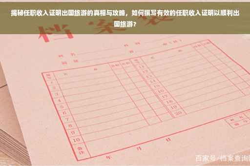 随着全球化的推进,出国旅游已成为许多人体验不同文化和生活方式的重要途径,在出国旅游的准备过程中,任职收入证明作为一个重要环节,往往被人们忽视,本文将深入探讨任职收入证明在出国旅游中的重要作用,同时分享详尽的实用攻略,帮助大家更好地享受异国风情。