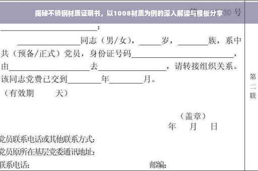 摘要:本文将为您深入解析不锈钢材质证明书,以1008材质为例,介绍材质证明书的含义、作用及重要性。通过了解不锈钢材质的性能和特点,我们将探讨如何正确解读材质证明书,并为您提供一份实用的材质证明书模板。通过阅读本文,您将能够获取不锈钢材质证明书的全面了解,确保材料质量符合标准。