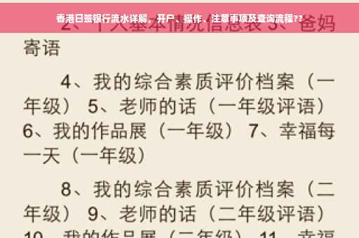 随着香港金融市场的繁荣与发展,越来越多的人开始关注香港的银行服务,日签银行流水作为一种便捷高效的金融服务方式,受到了广大客户的广泛青睐,本文将为您详细介绍香港日签银行流水的开户流程、操作方法以及注意事项,助您更好地了解和利用这一服务。