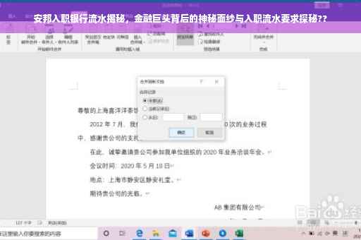 随着金融行业的日新月异,安邦集团入职员工的银行流水引起了广泛关注,作为一名自媒体作者,本文将带大家深入了解安邦入职银行流水的背后故事,揭开其神秘面纱。