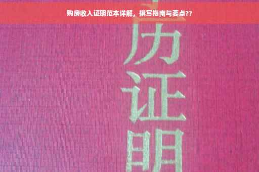 摘要:本文将详细介绍购房收入证明的范本,指导读者如何撰写一份符合要求的购房收入证明。内容包括证明的基本格式、必要信息、注意事项等,以帮助购房者顺利提供符合要求的收入证明,从而顺利购房。本文旨在帮助购房者解决收入证明撰写过程中的疑惑和困难。